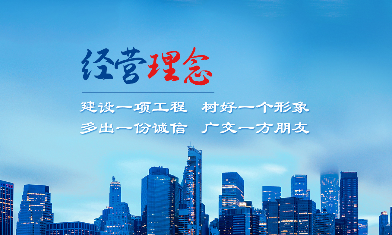 公司以建造合格建筑產品、助力國家建設為使命,以構建幸福企業為愿景。公司深知助力國家建設為使命所擔負的責任,故以“如履薄冰、如臨深淵、高調精細做事、低調謙虛做人”為工作理念,建立了完善的管理制度和質量保障體系,以人為本,構建和諧環境。公司牢固樹立安全意識、文明意識、質量意識、環境意識和精品意識。在公司質量管理過程中貫徹“雙百”方針:即工程合格率100%,客戶滿意率100%。以“建設一項工程,樹好一個形象,多出一份誠信,廣交一方朋友”為公司經營理念。